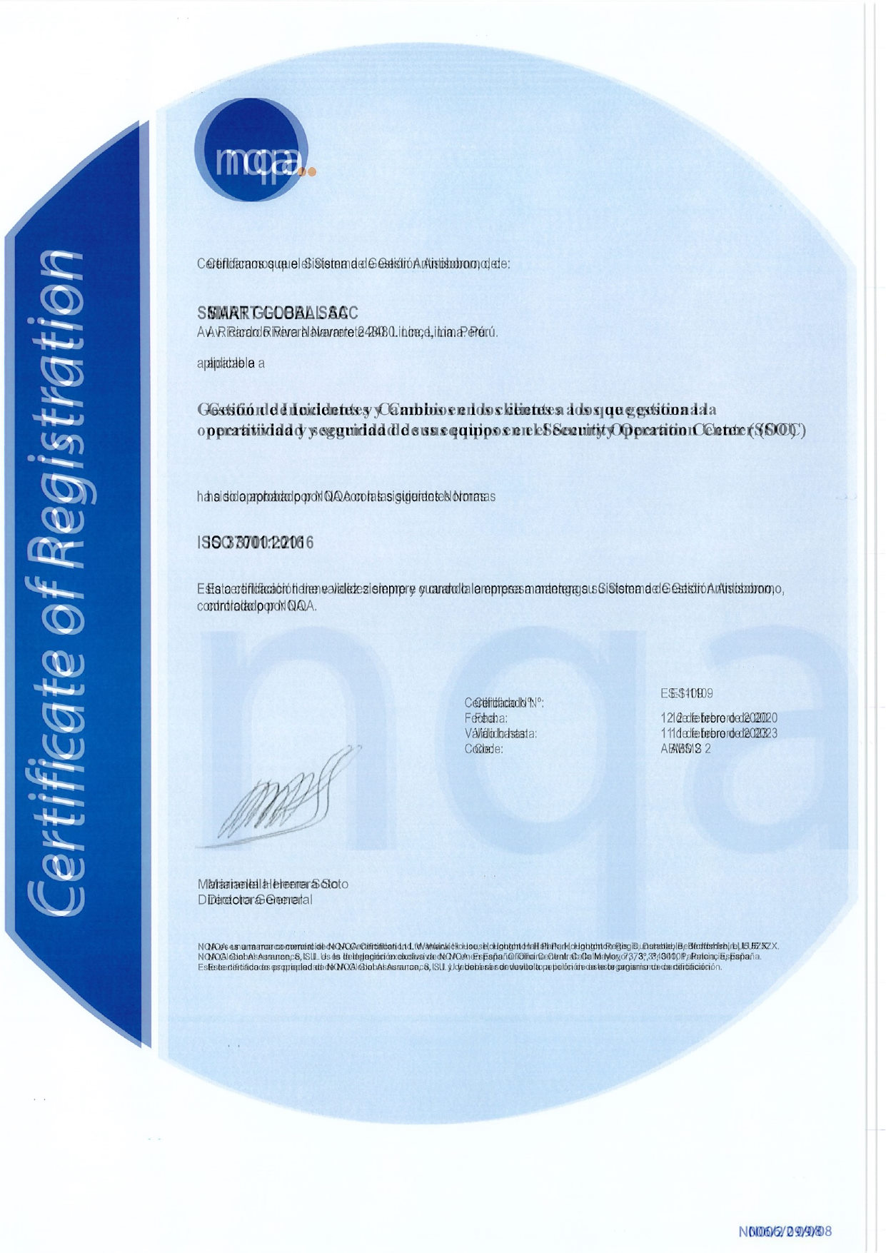 Smart Global SAC, comprometida con la legislación en vigor en materia antisoborno, se compromete, a la realización de sus actividades, en todos los ámbitos de actuación, a: